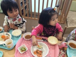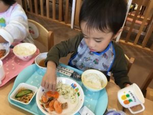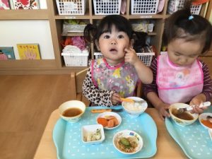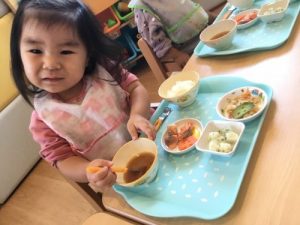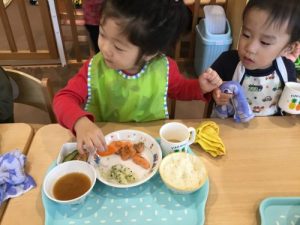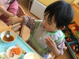 子ども達が長袖になってからは、手洗いの時に袖をしっかりとまくり手洗いができるように伝えています。2歳児の子は言われると「ア、ソウダッター?」と言って慌ててまくる子もいれば、「まくまくするもんね〜」とお姉さん、お兄さんっぽく言ってみたりして手洗いの習慣を学んでいます。