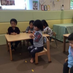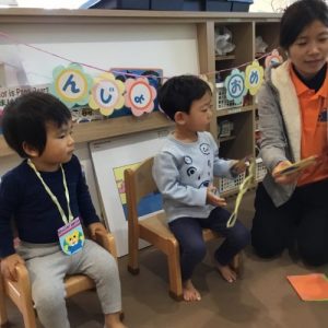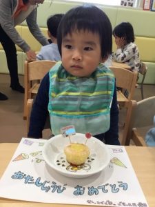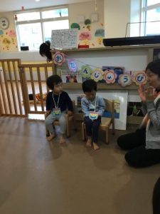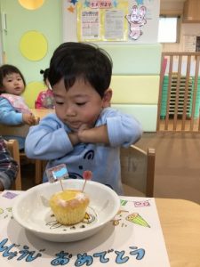 今月の誕生児は1歳児いちご組1人と、2歳児りんご組1人でした。