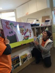 いよいよ保育士からの大型絵本「へんしんおばけ」の読み聞かせのプレゼント!
