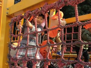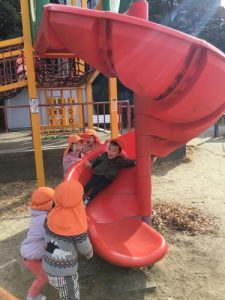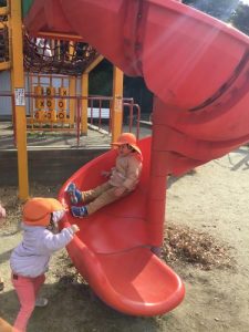 滑り台を滑ると、次は、誰が滑ってくるのか、どきどきわくわくして