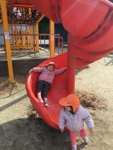 「今日は、どこにお散歩いくの~?」「ぐるぐる滑り台できる??」