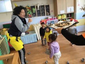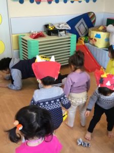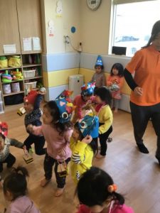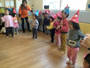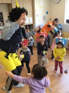 でも先生が「よ~しみんなでやっつけよう!」!と言うと「うん!!」と勇敢に立ち向かう2才児のお兄さん、お姉さん!