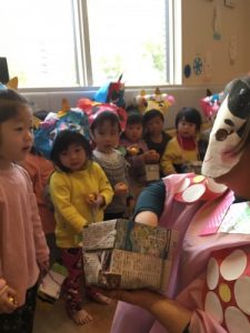 子ども達はまた悪いものが来たのかと戦闘態勢をとっていましたが、悪者じゃないと分かるとニコニコ(^^♪