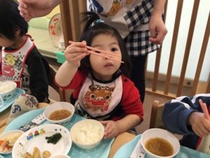 そして2月からはお箸を使ってお給食を食べています!