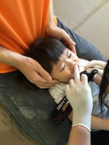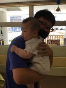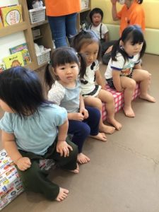 長椅子に座って、検診を受けている子が終わるのをじっと待っています。(さすが、サンライズのお兄さんお姉さん?)