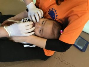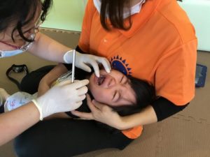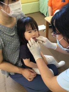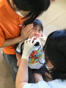 「磨かないと虫歯になって歯がボロボロになっちゃうんだよね」など分かりやすく説明すると、ウンウンと真剣に耳を傾けて聞いてくれた子ども達。