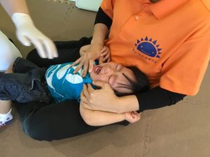 歯医者の先生のところに行くまでは、楽しそうに遊んでいたいちご組の子ども達。
