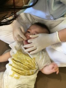 まだ歯は生えていないけれど、上手にお口を開けられました!