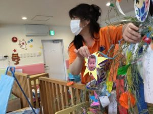 6月中に 各クラスで たなばた飾りの製作をして ご家庭にもご協力をいただいて 飾りを作ってもらい 短冊にも願い事を 書いていただきました。