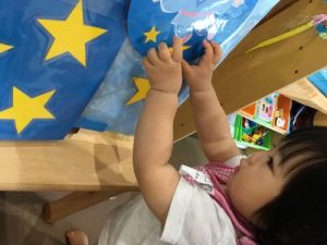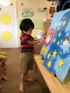 前のパネルに おりひめさまとひこぼしさまが会えますようにと 順番に 星?を貼っていきました(o^―^o)