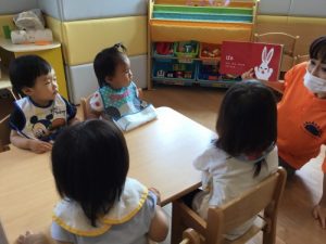 サンライズキッズ保育園では 読み聞かせプログラムとして