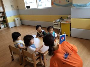 サンライズキッズ保育園では 1日に10冊を目標に いろんな保育士に 読み聞かせを実践しています。