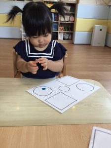 三角や四角の中にシールをぺたぺた!上手に貼れました~~!!