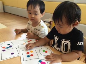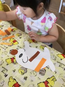 最近のり付けの練習をしている二歳児さん!!