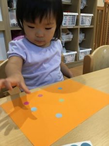1歳児は お家の都合で しばらくお休みするお友だちに シールを貼って メッセージカードを 先生とともに作成したりしました。