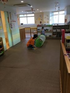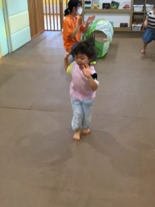 2歳児は トンネルやフープ使って運動遊びをしたり フラシュカードでは 積極的に 声を出して 一生懸命答えていました。