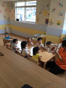 自由に遊んでいる時など 心がリラックスしている時の読み聞かせは 本当に 子どもらしい 笑顔を見ることができますね。