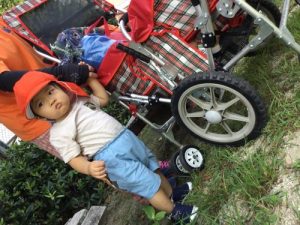 散歩の途中でウトウトしてしまうこともあるけれど(かわいい)