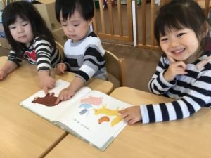 子ども達は 自由に遊ぶ時間など 自分で絵本を持ってきて お友達同士 見たりすることも大好き