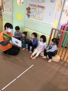 いろんな野菜達が登場してくるので子ども達も見ながら「じゃがいも!」「にんじん!」と指を指して答えながら野菜の名前を言える種類も増えてきました!