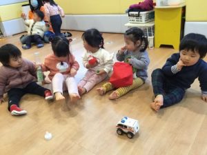 みんなでおままごと遊びをしたり、買い物鞄もしっかり持って「イッテキマース」とお使いに行ったり、友達と手を繋いでお使いに行ったり、いつも楽しそうに遊んでいます?