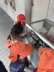 赤ちゃん亀やお母さん亀などを近くで見る事ができ、「チッチャイネ!」「オーキイ!」と子ども達も興奮気味で背伸びをしながらジッと観察していました?