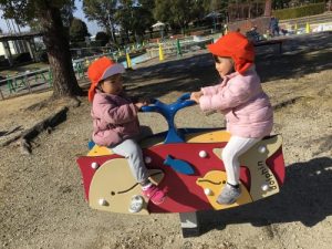 子ども達も 戸外遊びでは 遊具で遊んだり マテマテ~♪と追いかけっこを楽しんだり たくさんの笑顔を見る事ができました。