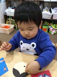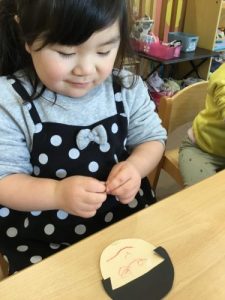 ぼくたちも おひな祭りの製作をしたよ   おめめをつけて~♪    かわいいのができるかな?