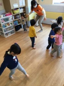 月曜日と金曜日は 先生のピアノに合わせて リトミック♪