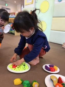 おままごとも楽しい!上手に盛り付けられたでしょ(^O^)