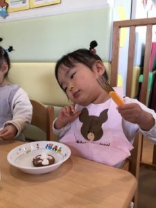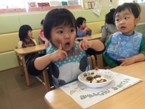 「今日は誰の誕生日でしょうか」と声をかけるとピッピッピみんなの目線の先には、、、、