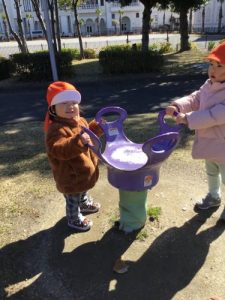 風が冷たい寒い日も、暖かい日もあり、日によっては「暖かいね!」「ジャンパーいらなーい!」と子ども達もお話ししていました?