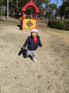 公園に着くとたくさん身体を動かして、上着を脱いで元気よく遊んでいる子どもの姿があります!