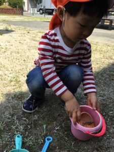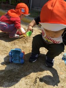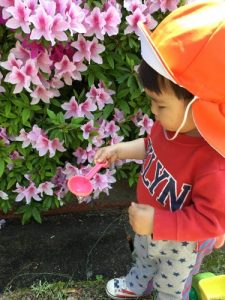 お砂場遊びをしたりスコップでお花に水やりをする姿がありました!