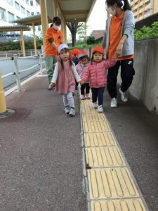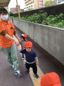 お友だちとの手繋ぎ散歩もすっかり上手になった子ども達。