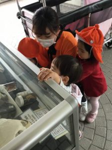 興味津々にガラスに張り付いてジッと観察していました?
