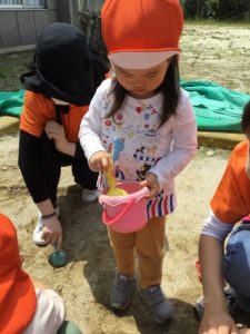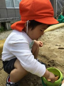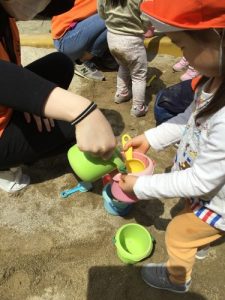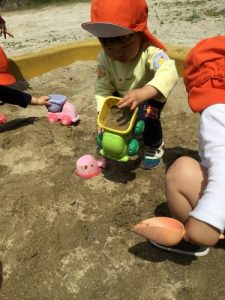 暑くなってきたので、お水を使ってお砂場遊びを楽しみました!