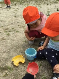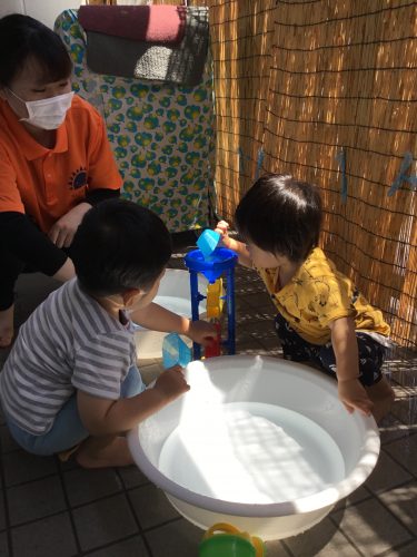 熱中症対策として、こまめに水分補給したり、長い時間日向で遊ばないなど、天候・子どもの様子を見ながら対応しています。