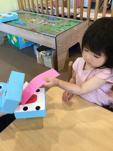 先日、「カタツムリさんはあじさいのおはなが好きなんだよー?」と保育士が話した事を覚えていたようで、
