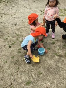 公園に行くと虫探し、「ダンゴムシ」「ちょうちょ」「てんとうむし」