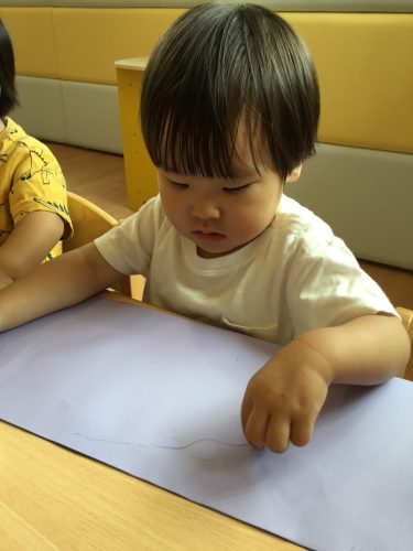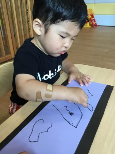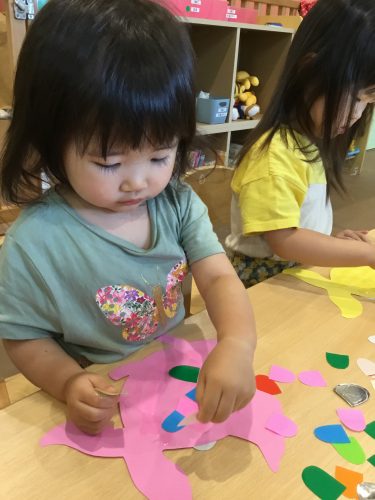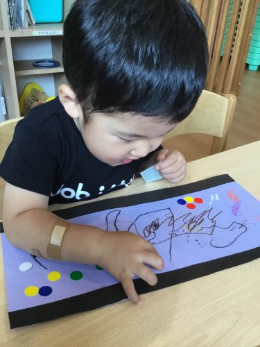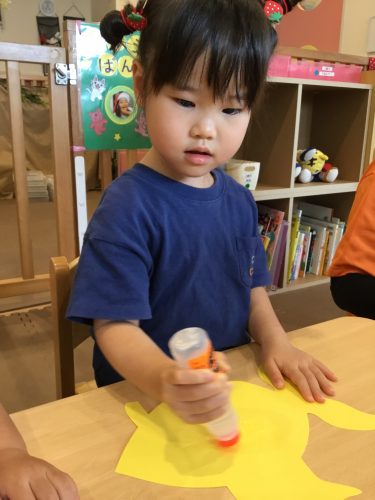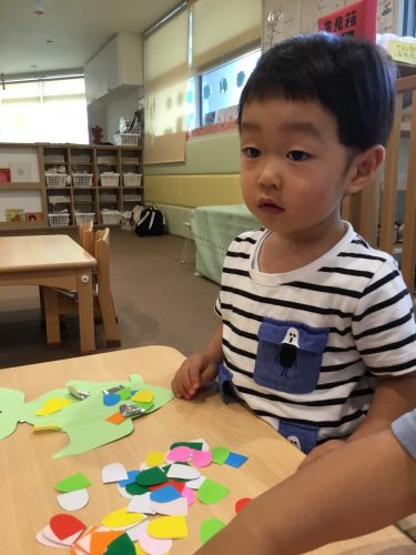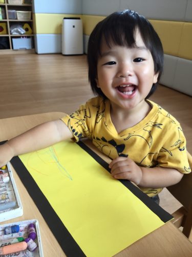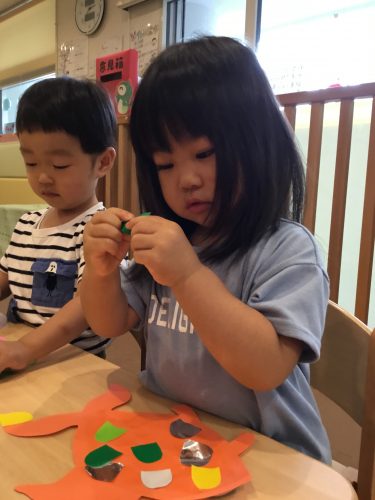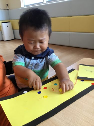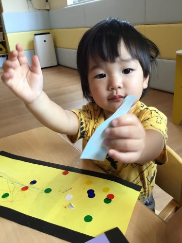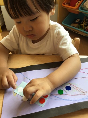 保育室でクレヨンとシールを使って製作をしました?