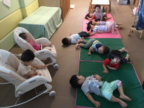 マットの上にゴロンと横になって、、