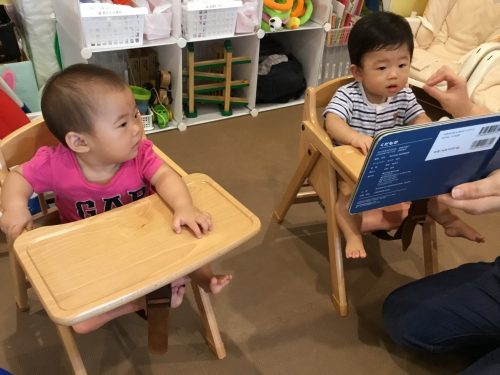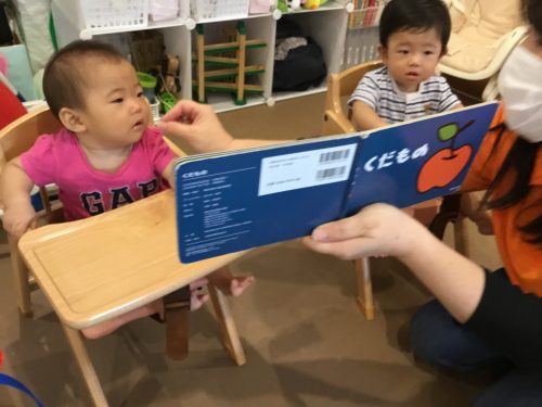 0歳児では、絵本を通して保育者との楽しい関係を作っていく時間を沢山作るようにしています。