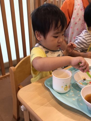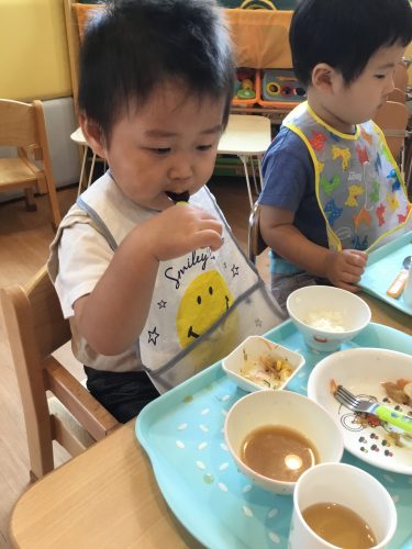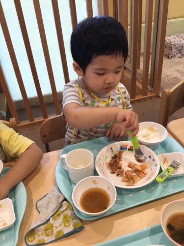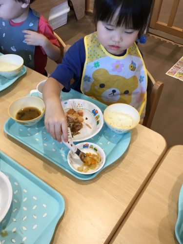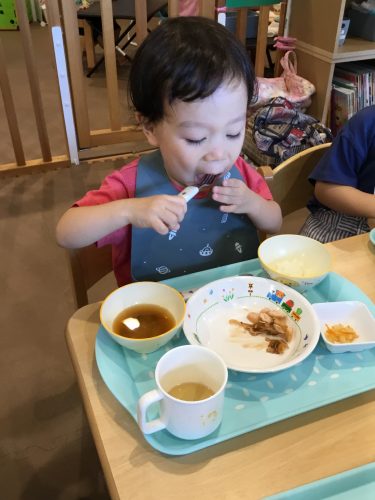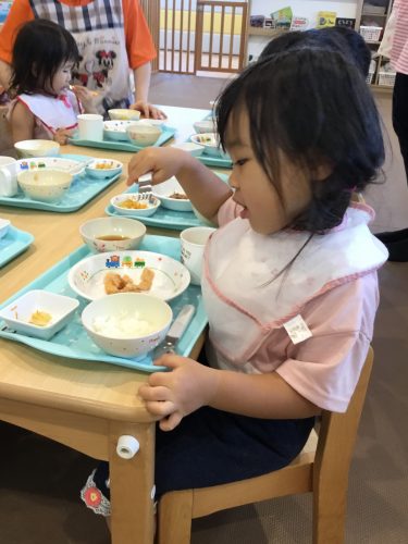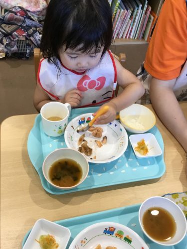 保育園では、お水遊びからお散歩に変わり、運動量が増すこの時期、しっかりと栄養を取っていきたいですね。