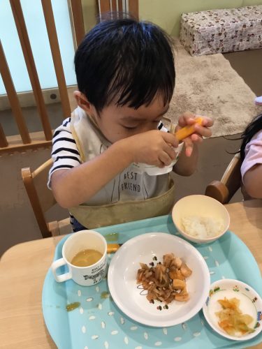 食べ終わった後には、ピカピカのお皿を嬉しそうに見せてくれるお友だち。