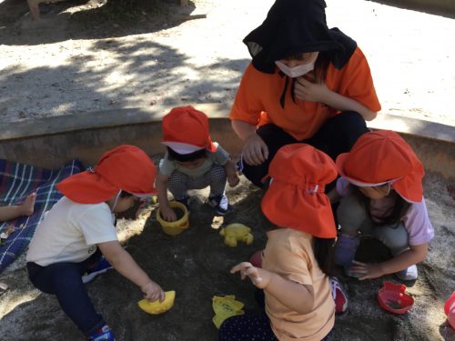 公園に到着すると、みんなでお砂場遊びの始まりです。