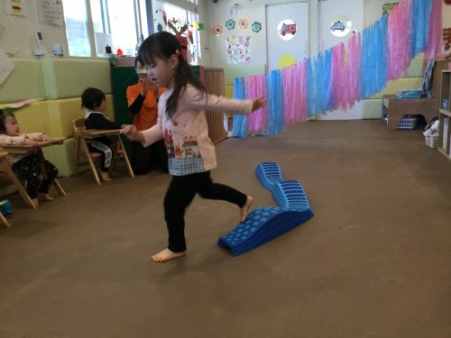 2歳児の子ども達は「しょうがいぶつきょうそう!」