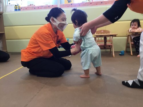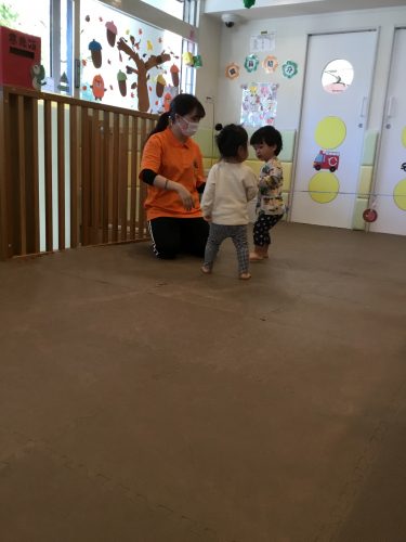 お次は1歳児の子ども達「自分のマークを取ってこよう!!」