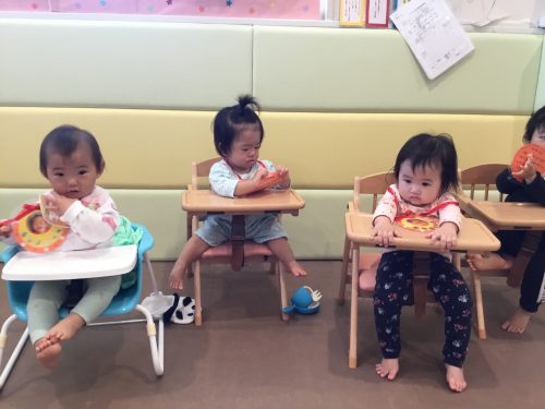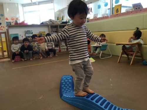 大好きなマットに乗って嬉しそうな子ども達。