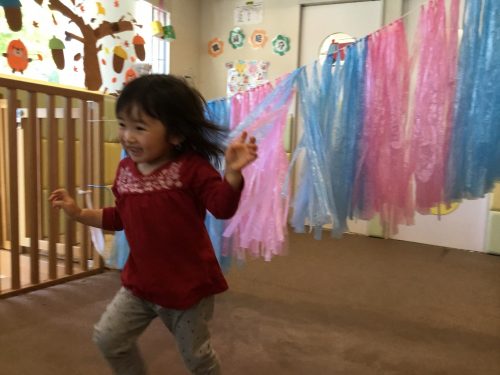 子ども達は冷たい風が吹くと「つめたい〜」「きゃーー」と大興奮!!